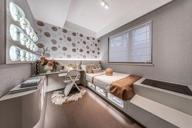 ○主卧套房升级:配备独立衣帽间+独立卫浴+全景飘窗,奢享私密生活仪式感,与社区园林景观无缝衔接。