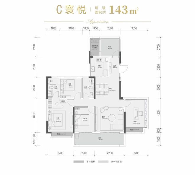 在容积率仅2.09的低密洋房住区,143㎡户型以四房变五房的魔法空间设计,成就改善家庭的终极选择↓